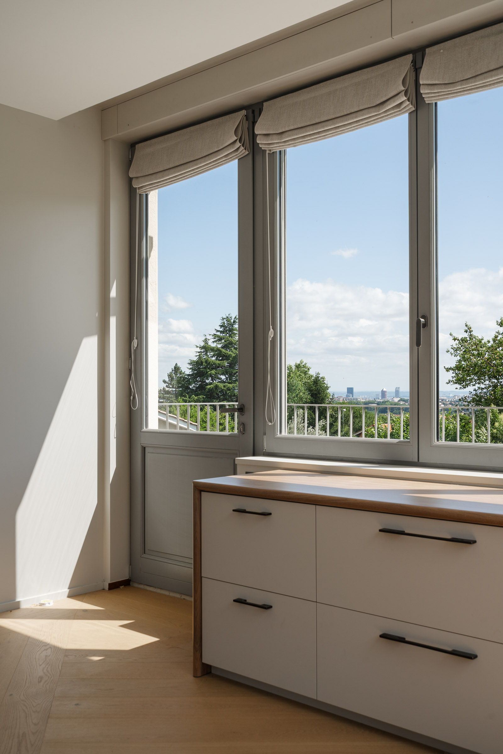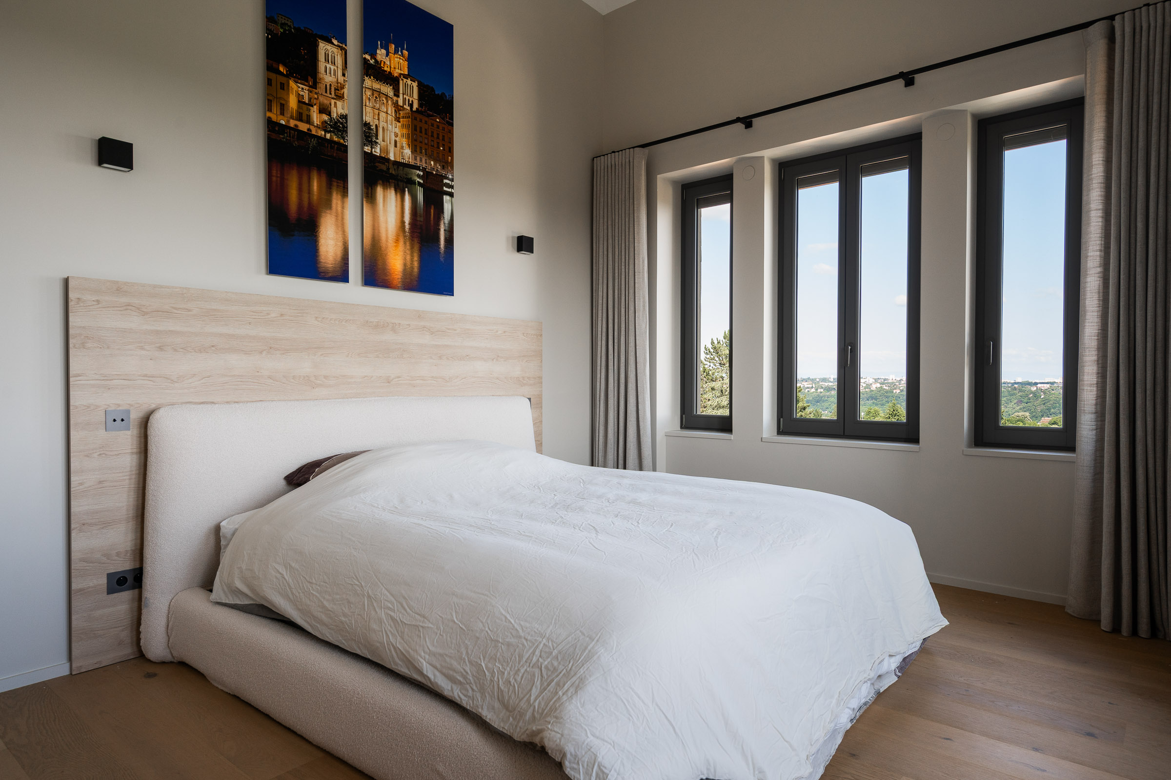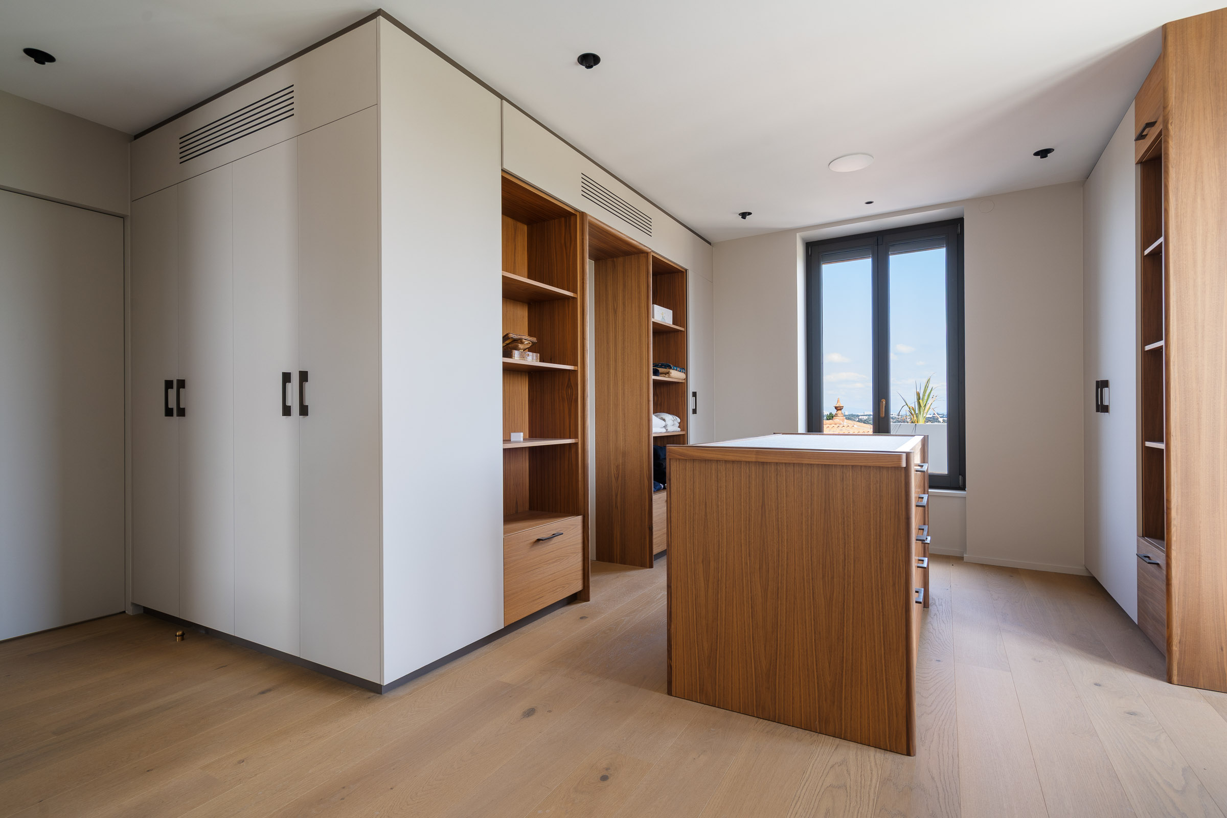 Maison Collonges Saint-Cyr-au-Mont-d'Or (69) Mobilier sur mesure Dressing - Chambres - Salon Les objectifs de notre client : Poursuivre l'harmonie générale de la maison à travers le mobilier Répondre aux usages de chacun avec des meubles parfaitement adaptés Sourcer minutieusement les finitions répondant aux exigeances de nos clients